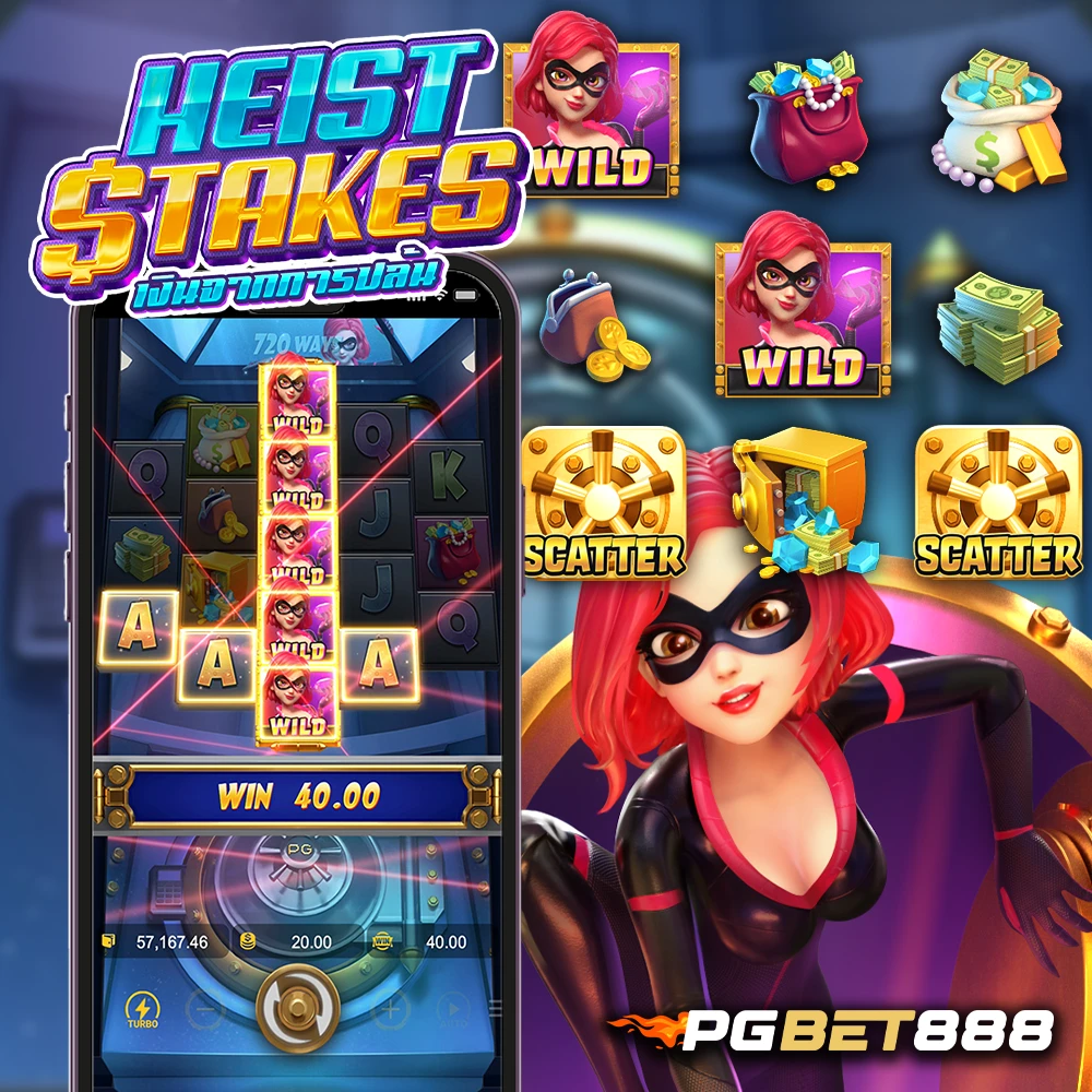 - Heist Stakes: เกมสล็อตธีมปล้นธนาคารสุดมันส์ โอกาสชนะรางวัลใหญ่ที่ PGBET888
