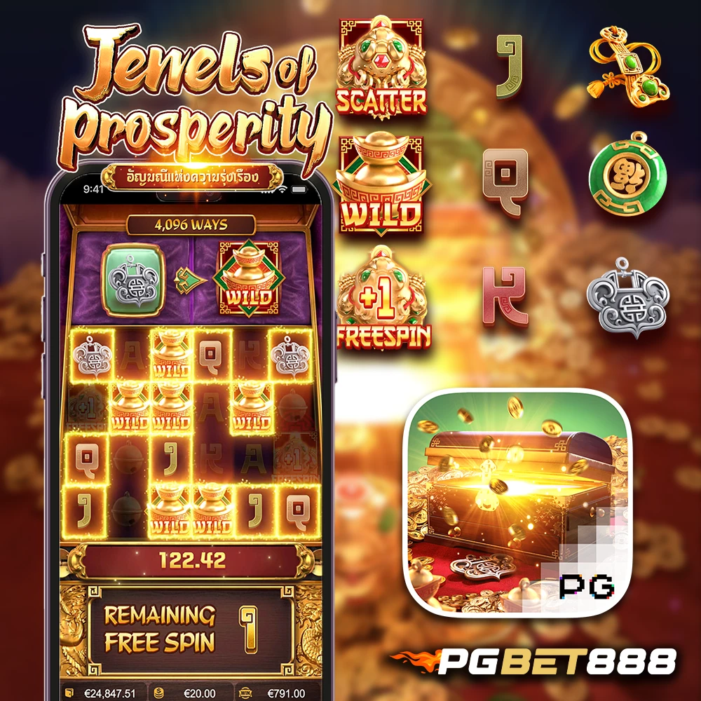 มาทำความรู้จักกับ Jewels of Prosperity สล็อตดังจาก PG Soft ที่ PGBET888 สล็อตขนาด 6×4 รีล 4096 วิธีชนะ พร้อมฟีเจอร์ Free Spins, Sticky Wild และค่า RTP 96.73% อ่านรีวิวและวิธีเล่นได้ที่นี่
