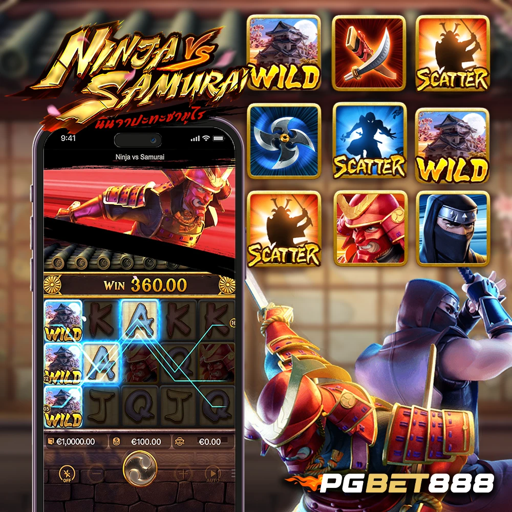 PGBET888 ถือเป็นหนึ่งในเว็บไซต์ที่เหมาะสำหรับผู้เล่นที่ต้องการสนุกกับเกม Ninja vs Samurai และเกมอื่นๆ จาก PG SOFT โดยมีการบริการที่รวดเร็วและสะดวกสบาย